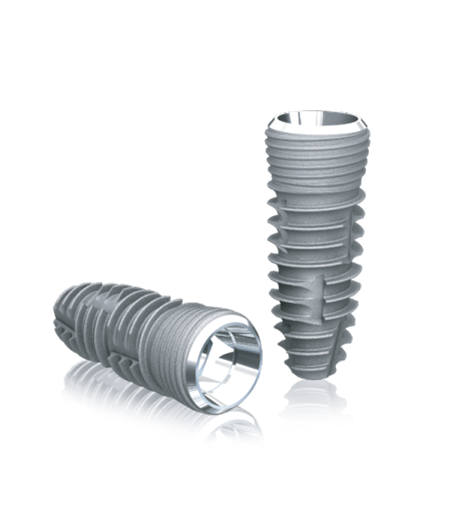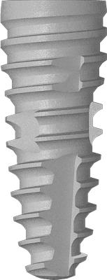 Схема на зъбен имплант от серията IS2 на Neobiotech. Вижда се геометрията на имплантатната платформа, която е цилиндрична в областта на тялото и заоблена като конус в областта на върха на импланта. Някъде до 2002 - 2003 година почти всички имплантатни системи в света бяха с цилиндрична форна на вътрекостната част; след този период като по-удачна се наложи коничната форма. Оказа се че цилиндричната форма натоварва костта повече в напречна посока, докато коничната - в надлъжно направление. И тъй като липсата на патологични натоварвания, водещи до костна резорбция, е ключова по отношение на успеваемостта на лечението с импланти в дългосрочен план, повечето производители на зъбни импланти започнаха да прилагат конични форми. В резултат на това възникна нов проблем - коничната форма предразполага към компресия на костта при завинтване на импланта в нея; от своя страна тази компресия води до нарушено кръвоснабдяване с последваща опасност от костна резорбция. Разбира се, при завинтване на вътрекостната част с по-голяма сила и последващо връщане назад компресията намалява, но се губи първичната стабилност на импланта. А последната пък е ключова по отношение на краткосрочната успеваемост при лечението с импланти. Поради това се стигна до компромисно решение, съчетаващо предимствата на двете форми на имплантите - в областта на апекса зъбните импланти са конични, а в областта на шийката и средната част - цилиндрични. Така въртящият момент (торк) при поставяне на импланта може да се контролира - при връщане с 1/4 или 1/2 оборот назад имплантът не губи своята първична стабилност, тъй като цилиндричната му част го фиксира в челюстната кост.